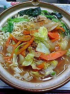 インスタントラーメンにスーパーで買ってきた野菜炒めをトッピング(^O^)v